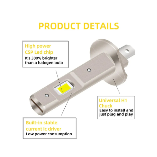 - These H1 LED headlight bulbs are designed for exceptional brightness and clarity, delivering 12,000 lumens per pair (6,000 lumens per bulb) with a crisp 6000K white light to significantly enhance nighttime visibility and driving safety.ย