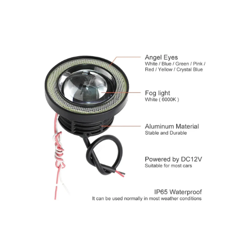 - This Fog LED Lamp with Angel Eye is a stylish and functional upgrade suitable for a wide range of car models. Designed with energy efficient LED technology, it offers low power consumption while delivering a high brightness output of up to 3200 lumens and a crisp 6000K white light.