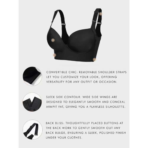 - Tired of bras that donโt provide full coverage? Our wide side wings and thick band effortlessly smooth out any side or armpit bulges, ensuring a sleek and flawless silhouette under any outfit.