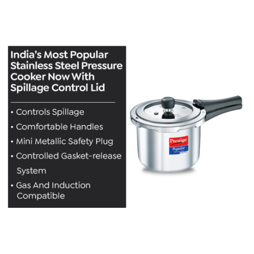 Product Description of Prestige Popular Stainless Steel Pressure Cooker 3L – PCP30-SS