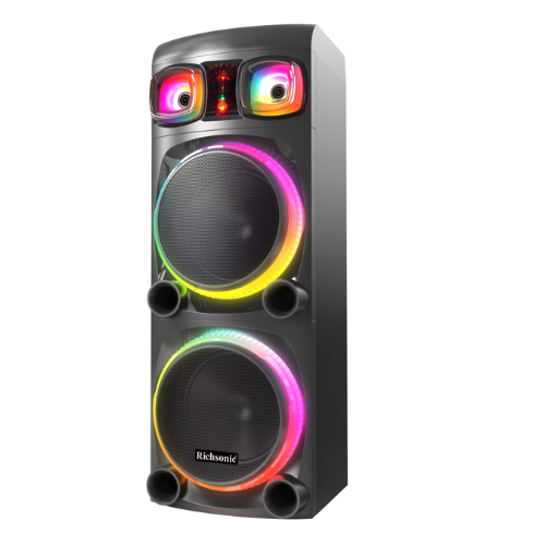 LPT91218 Dual 12-inch Party Speaker, a dynamic audio solution engineered for unforgettable events and celebrations. With a powerful output of 60W per speaker, this system delivers crystal-clear sound that will resonate throughout any venue. Featuring the latest Bluetooth 5.3 technology, you can easily connect your devices and enjoy uninterrupted music playback from multiple sources, including AUX, USB, and TF cards, as well as FM radio.