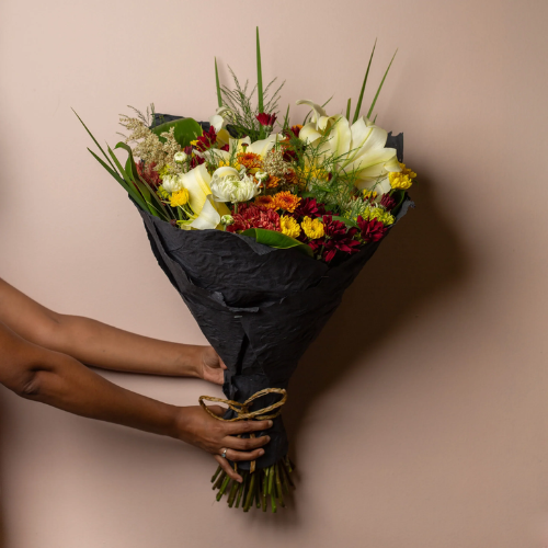 Summery, bright and beautiful! Item Includes: Lilies Pompom Chrysanthemums Statis Foam Wrapping Special Notes; * Lilies will arrive in bud form for convenient transport and longer shelf life